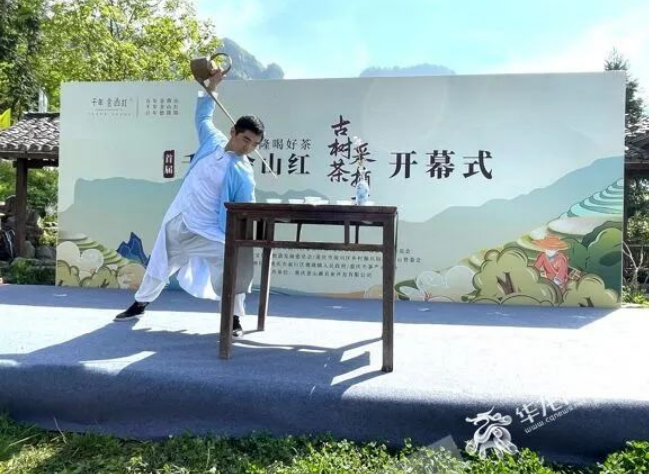 悠悠鼓乐回荡山间,阳光洒入青翠茶山。重庆古树茶研究院名誉院长刘勤晋教授说,金佛山野生古茶树是仅次于云南野生大茶树群的又一野生大茶树集聚地,茶学界认为南川应是茶树发源地之一,陆羽《茶经》“茶者,南方之嘉木也,一尺二尺,乃至数十尺。其巴山峡川有两人合抱者,伐而掇之”早有记载。据了解,近年来德隆镇大力发展古树茶产业,培育完成古树茶产业8200亩,年产鲜叶20万斤,建成金山红等古树茶生产龙头企业,当地茶农收入逐年递增。此次开幕式上,区文旅委副主任喻显玉为南川大树茶历史文化馆授牌,区委农工委副书记胡彬为重庆南川大树茶资源圃授牌。
